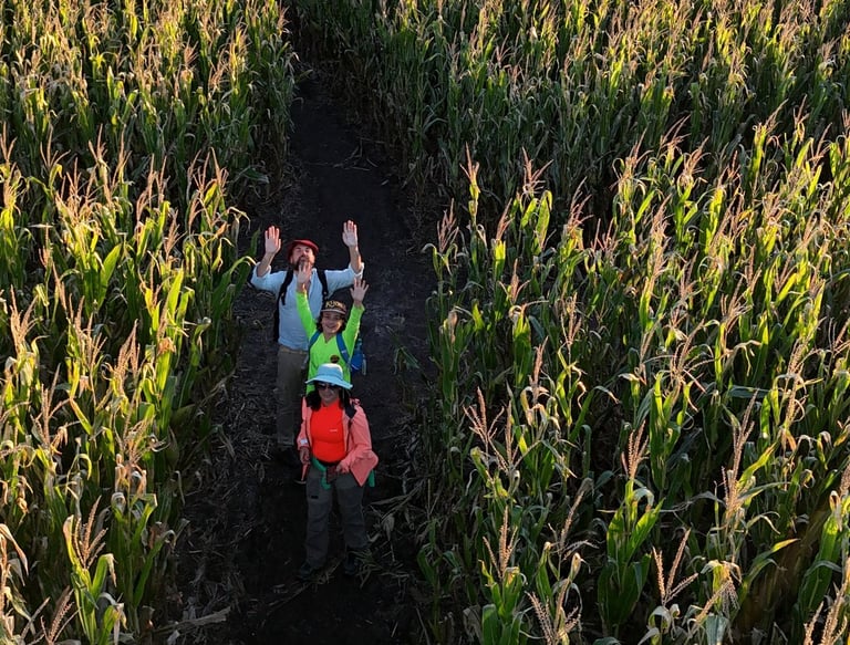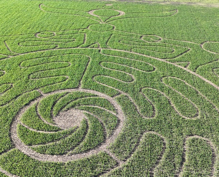 Es el primer laberinto de maiz de Uruguay y el más grande de América del Sur. A tan solo 4 km de la ciudad de Trinidad, en el km 184,400 de la ruta N°3 en el departamento de Flores, te espera para que te pierdas en sus figuras sagradas y te encuentres con tu verdadero ser.